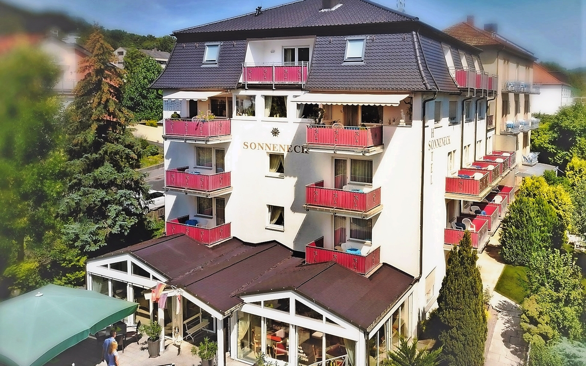 Im Hotel „Sonneneck“ erwartet Sie ein gepflegtes Haus mit behaglichen Zimmern. Sie werden täglich verwöhnt von der vielseitigen Küche. Die schöne Gartenterrasse ist ein geselliger Treffpunkt. Die Zimmer sind mit DU/WC, TV, Telefon, größtenteils mit Balkon ausgestattet und mit einem Aufzug erreichbar.